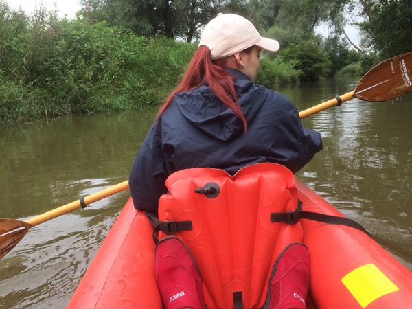 Gummiboot, Kajak oder Paddelboot. Beim Wehr Herrschenhofen wird umgesetzt,