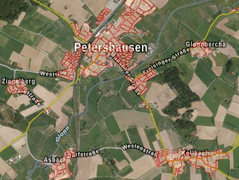 ist er im Kernort Petershausen 900, in Kollbach 800, in Glonnbercha 700, in