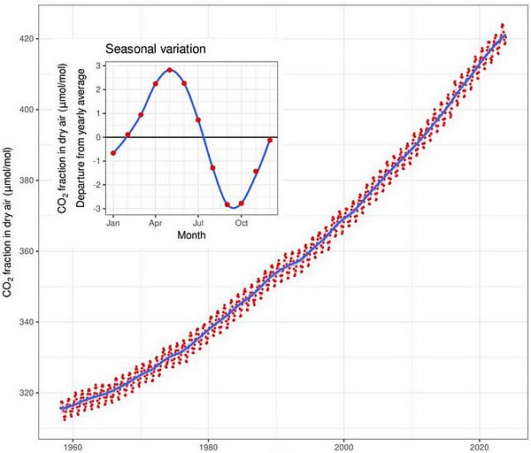Kohlenstoffdioxid in der Erdatmosphäre, gemessen seit 1958 am Mauna Loa auf