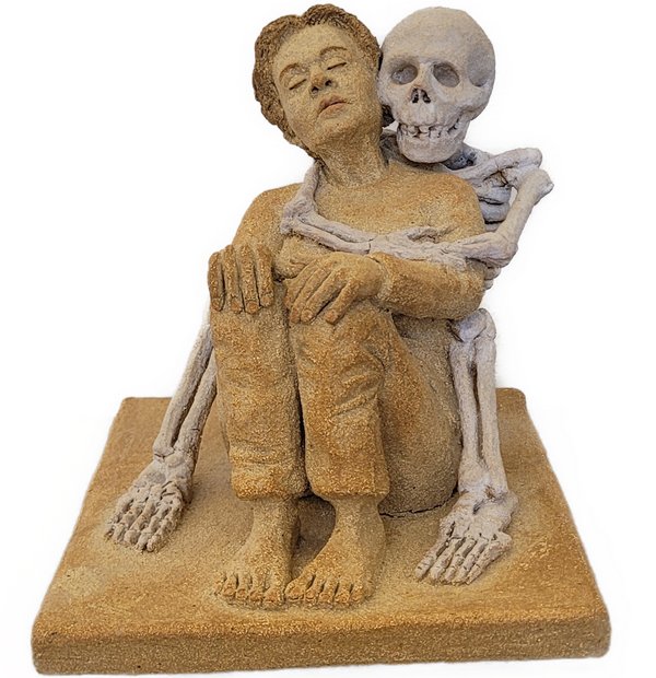 Künstlerin Dr. Angela Eberhard hat dem Tod 15 Plastiken aus Ton gewidmet, die