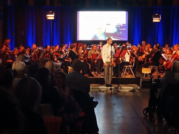 Fast alle Formationen mit aktiven und ehemaligen Schülern und Schülerinnen sowie Lehrkräften waren zur Feierstunde des 50. Geburtstages auf der Bühne versammelt. Sie spielten und sangen allein und mit unterschiedlicher Begleitung Kompositionen aus dem 17. Jahrhundert bis hin zu modernen Interpretationen aus Hair, König der Löwen und Starlight Express. Zwei junge Gesangssolisten, Katharina Meidinger und Jonas Wittmer, konnten immer wieder brillieren. Außerdem spielten Anja Czak Solovioline, Nick Becker Solo-Saxophon, Anna Nam-Winkler am Klavier und vierhändig beim Bolero von Maurice Ravel zusammen mit Angela Grau. Eugen Tluck erzählte viele musikalische Erlebnisse aus 50 Jahren, illustriert von einer Diashow von Anfang bis Ende des Abends.